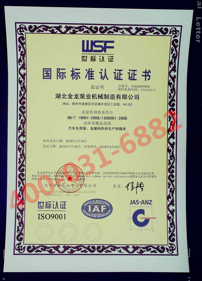 在公司員工的不懈努力下,經(jīng)過(guò)認(rèn)證公司專(zhuān)家的全面、嚴(yán)格、細(xì)致的指導(dǎo)和審核,確認(rèn)我公司質(zhì)量管理體系符合ISO9001:2008質(zhì)量體系標(biāo)準(zhǔn)的要求,并于2012年10月22日,向我公司正式頒發(fā)了ISO9001質(zhì)量管理體系認(rèn)證證書(shū)。