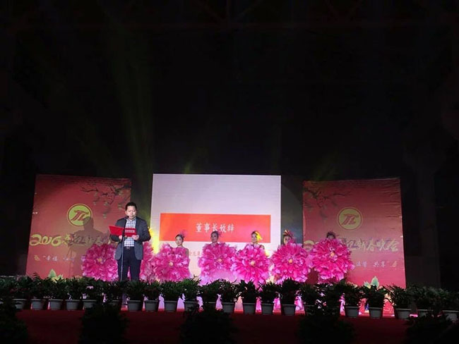 2月3日晚上6點,經(jīng)過一個月的籌備,湖北金龍集團公司迎新春文藝晚會隆重拉開帷幕,公司所有職工及家屬共同享受了這場視覺盛宴。晚會節(jié)目都由公司員工結(jié)合公司產(chǎn)品和實際情況自編自演的,其中有用公司產(chǎn)品做成服裝的T臺秀、小品、三句半、相聲、書畫表演、二胡、舞蹈等近三十個節(jié)目,同時晚會期間公司領(lǐng)導(dǎo)發(fā)出了上萬元微信紅包,點燃現(xiàn)場員工及家屬的熱情,引來了公司附近很多群眾的觀看。